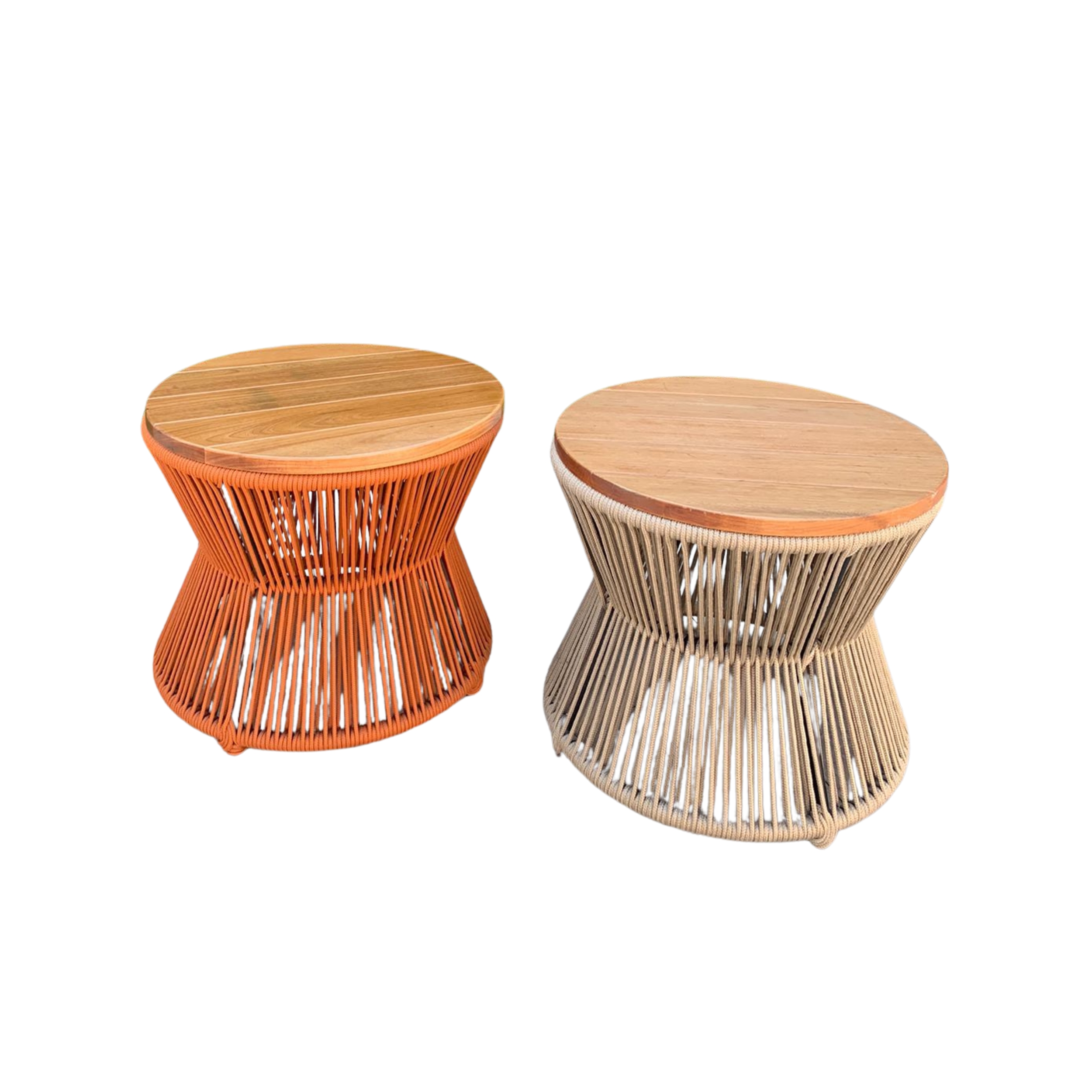 PUFF AMPULHETA COM TAMPO EM MADEIRA 50CM ⌀ - CORDA NAUTICA